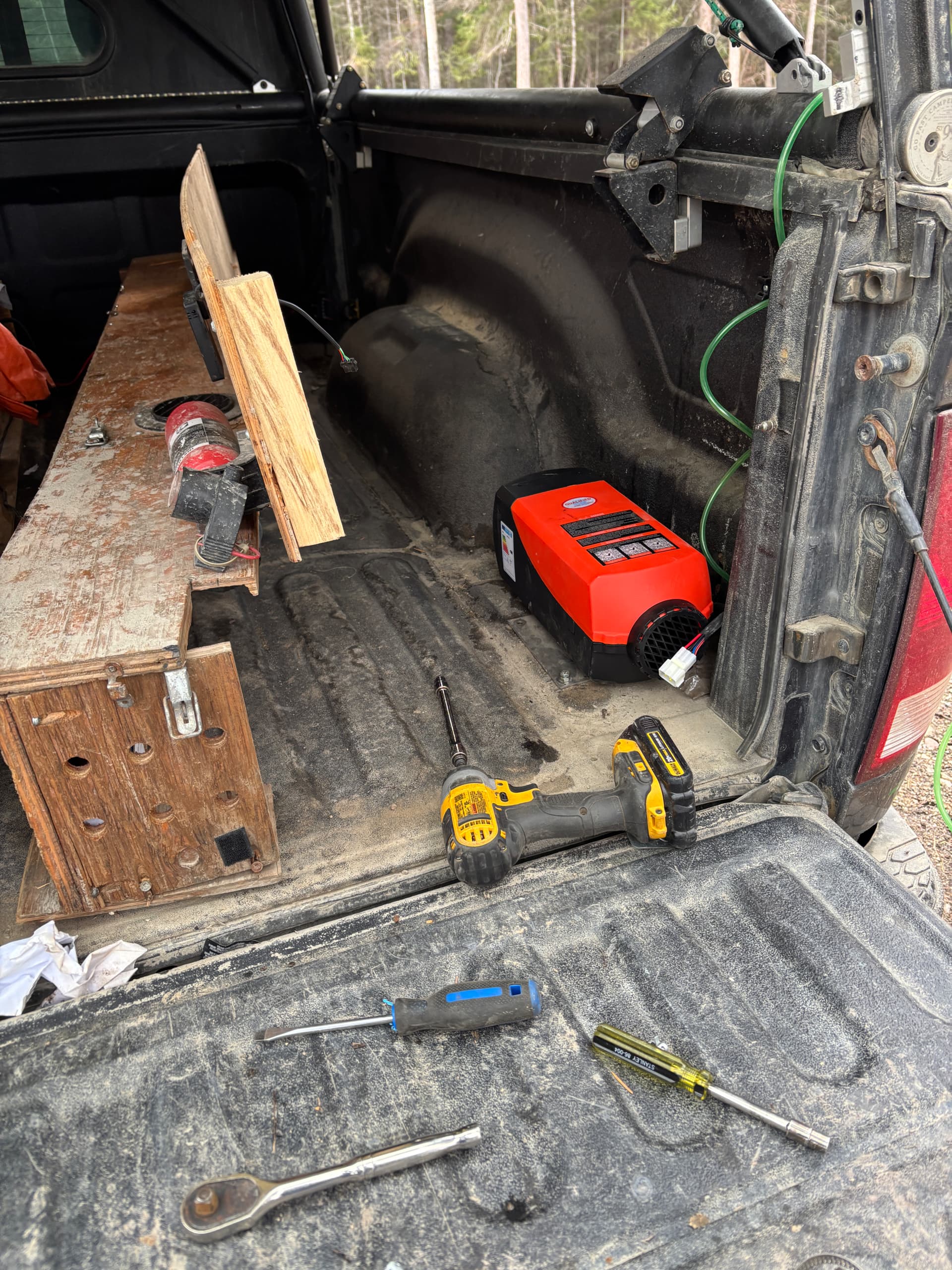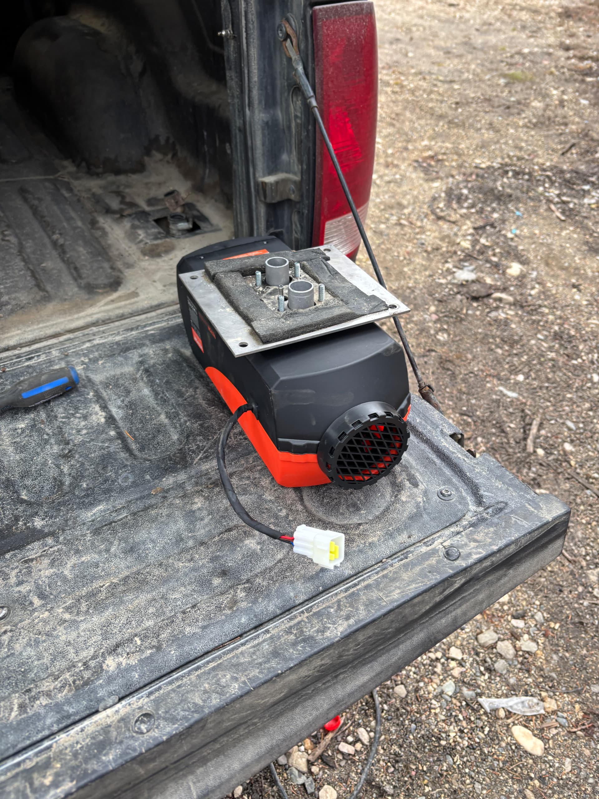 So I picked up a Vevor Bluetooth diesel heater off Amazon for $160 to replace my faulty Autoterm $1600 heater. As I’ve mentioned I like having a stealth setup, but my truck is gasoline and I didn’t want to deal with a tank.
