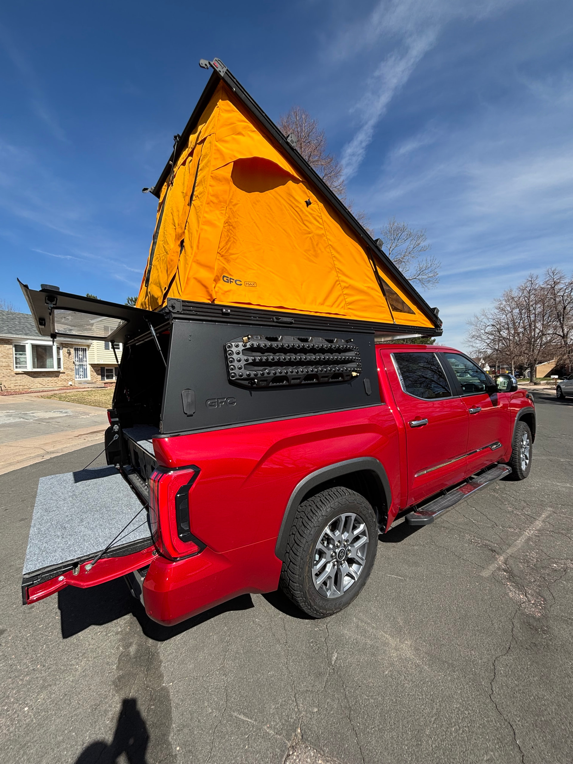 Awesome! How do you like that solar blanket? I actually have it sitting in my cart. I read somewhere that when you pick up the Max, if you ordered the solar, it will be shipped to your house to install yourself. Since I’ll be heading to Idaho for a month or so after I pick up my Max, I was eyeing this solar blanket. I was going to put 2 hooks on the rear corners of the GFC roof, and just hang the solar blanket from them (and park the truck facing west)