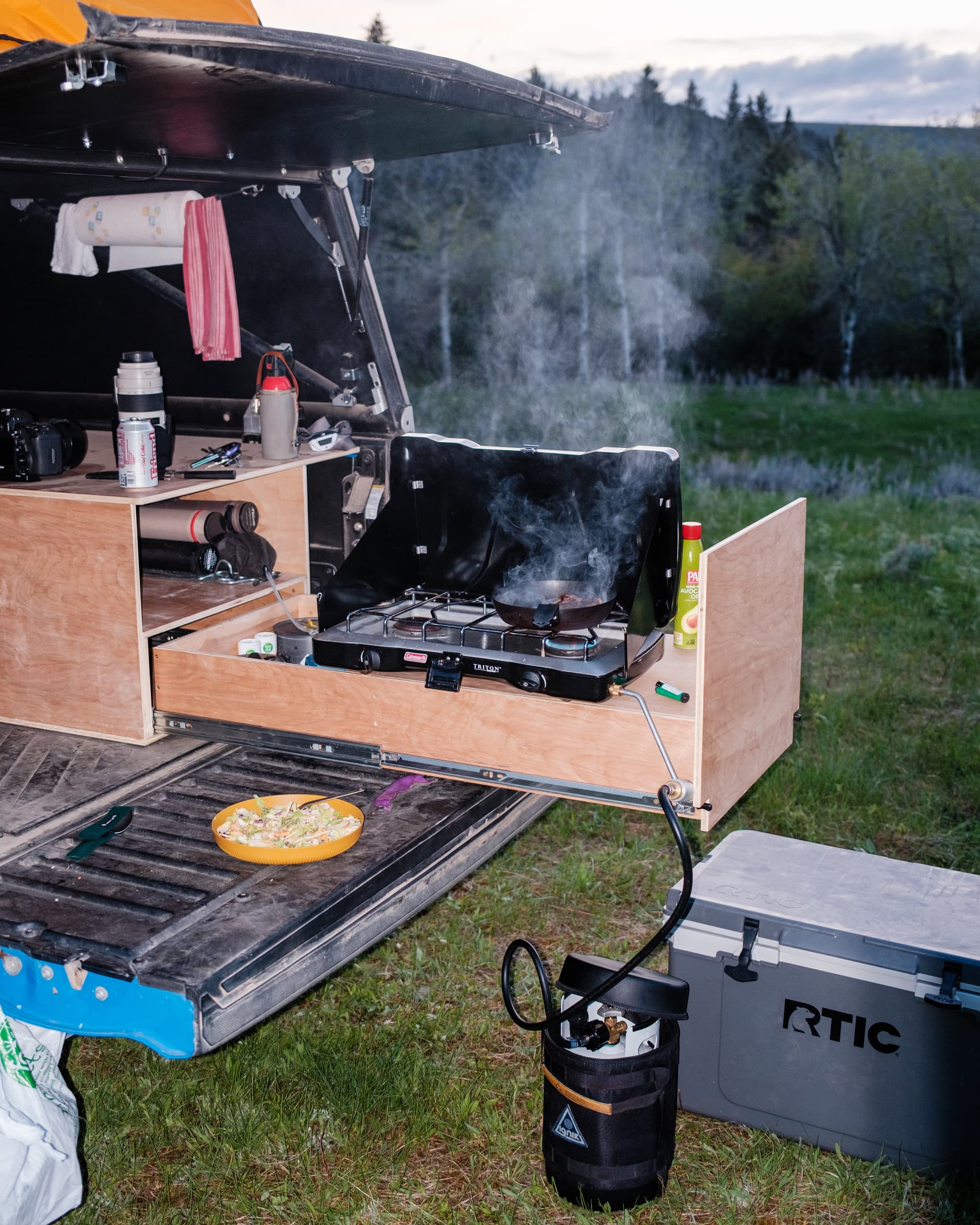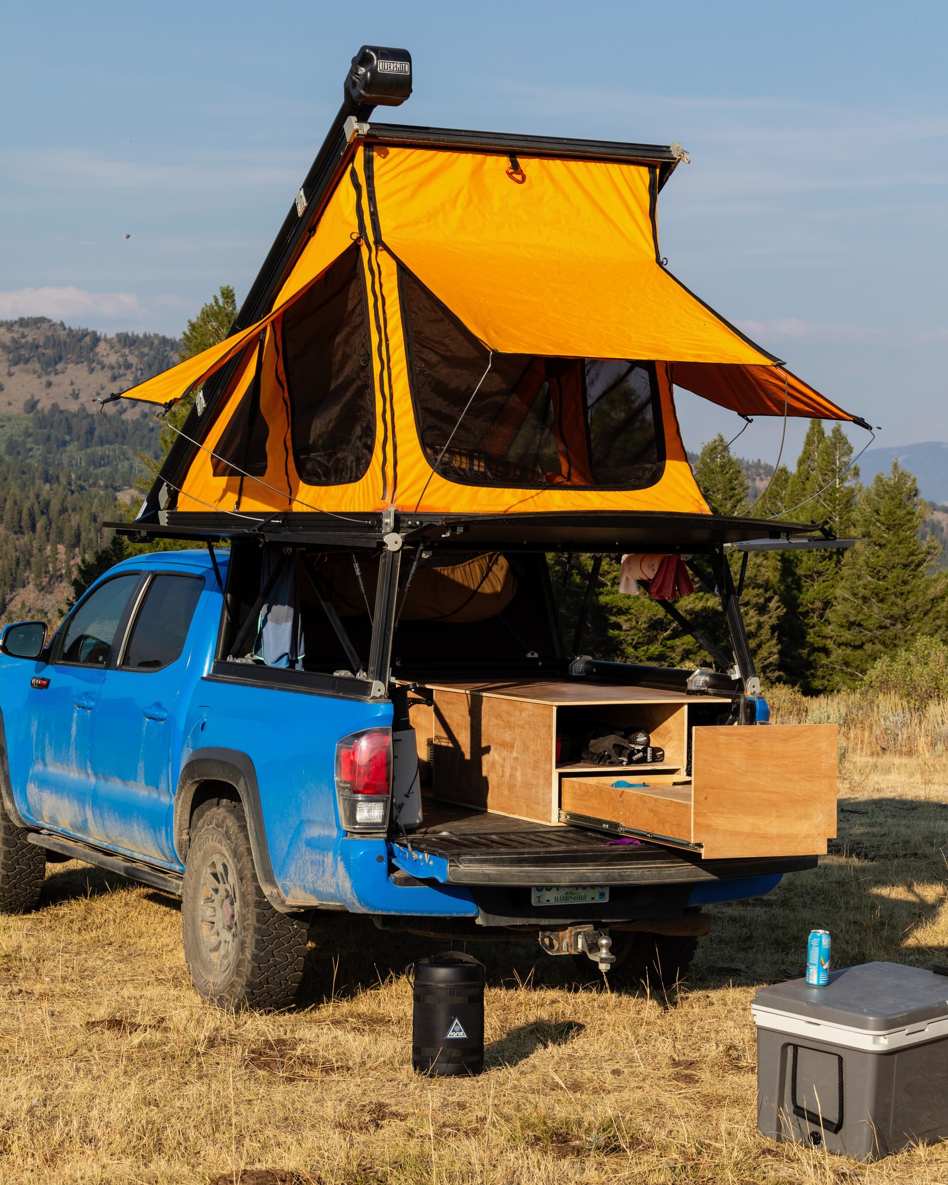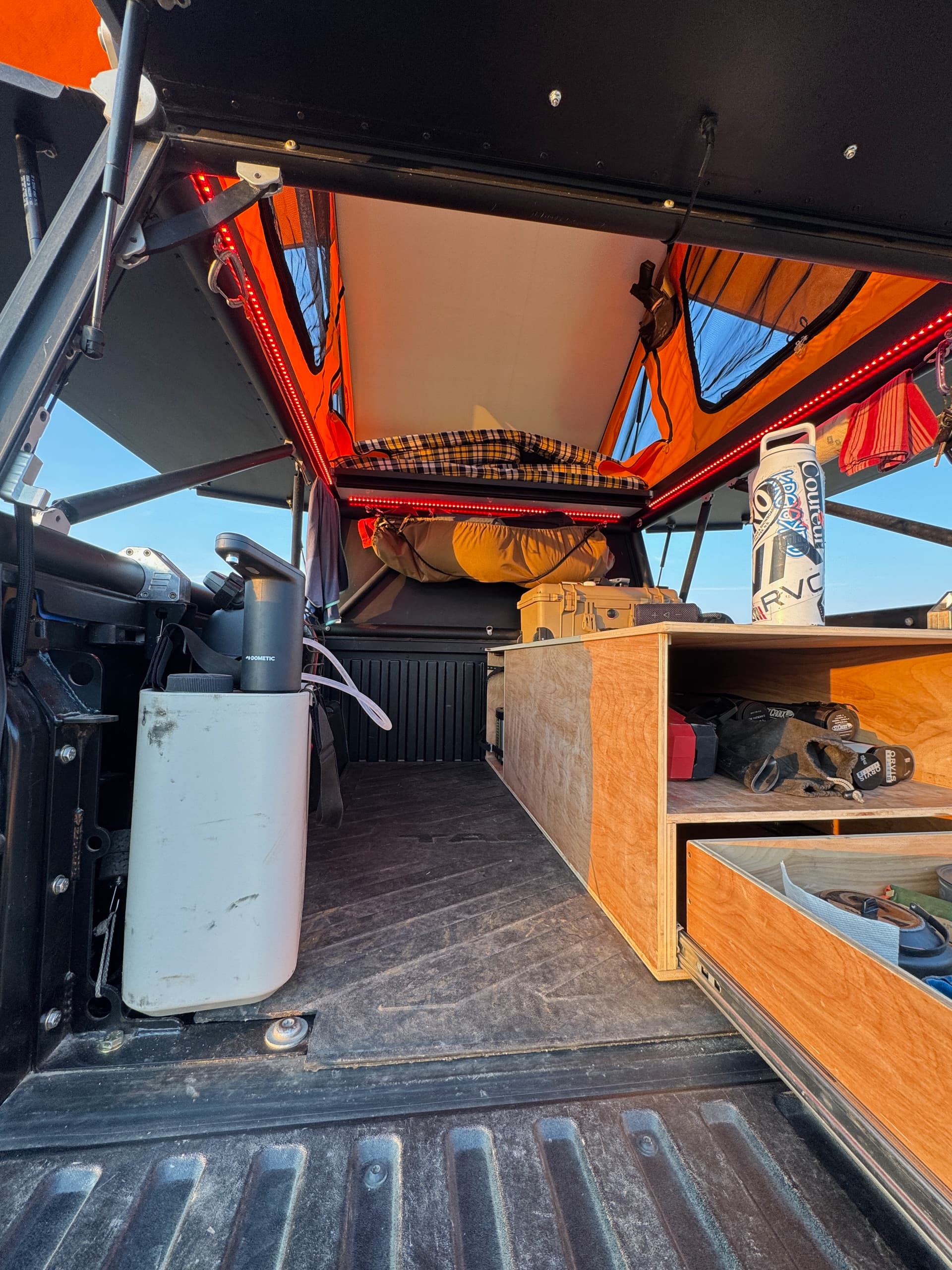 I want to introduce my 2019 Tacoma TRD Pro build to the community. This project initially began about a year ago with the purchase of the truck, followed shortly after by the V2 camper (Build #4496). As of the time I’m writing this, I’ve logged roughly 55 nights in the GFC from East to West Coast with many more to come. After a few trial runs in the camper, it became evident that a build-out would be necessary for future cross-country travel. For the bed build-out, I wanted functional storage to facilitate trips focused on fly fishing, while also allowing for adaptability to other activities. Housing camp kitchen essentials was a must along with additional cooking space for a stove or cutting board. I also wanted it to be removable for beach days when the bed is loaded with surfboards, as well as for the ability to pull everything out for a thorough clean of the interior space. There is definitely a lot of inspiration from Mark’s Tacoma bed build, but with some other tweaks. This is where the rig currently sits, but I’m happy to provide more details on the process and a complete parts list if anyone is interested.