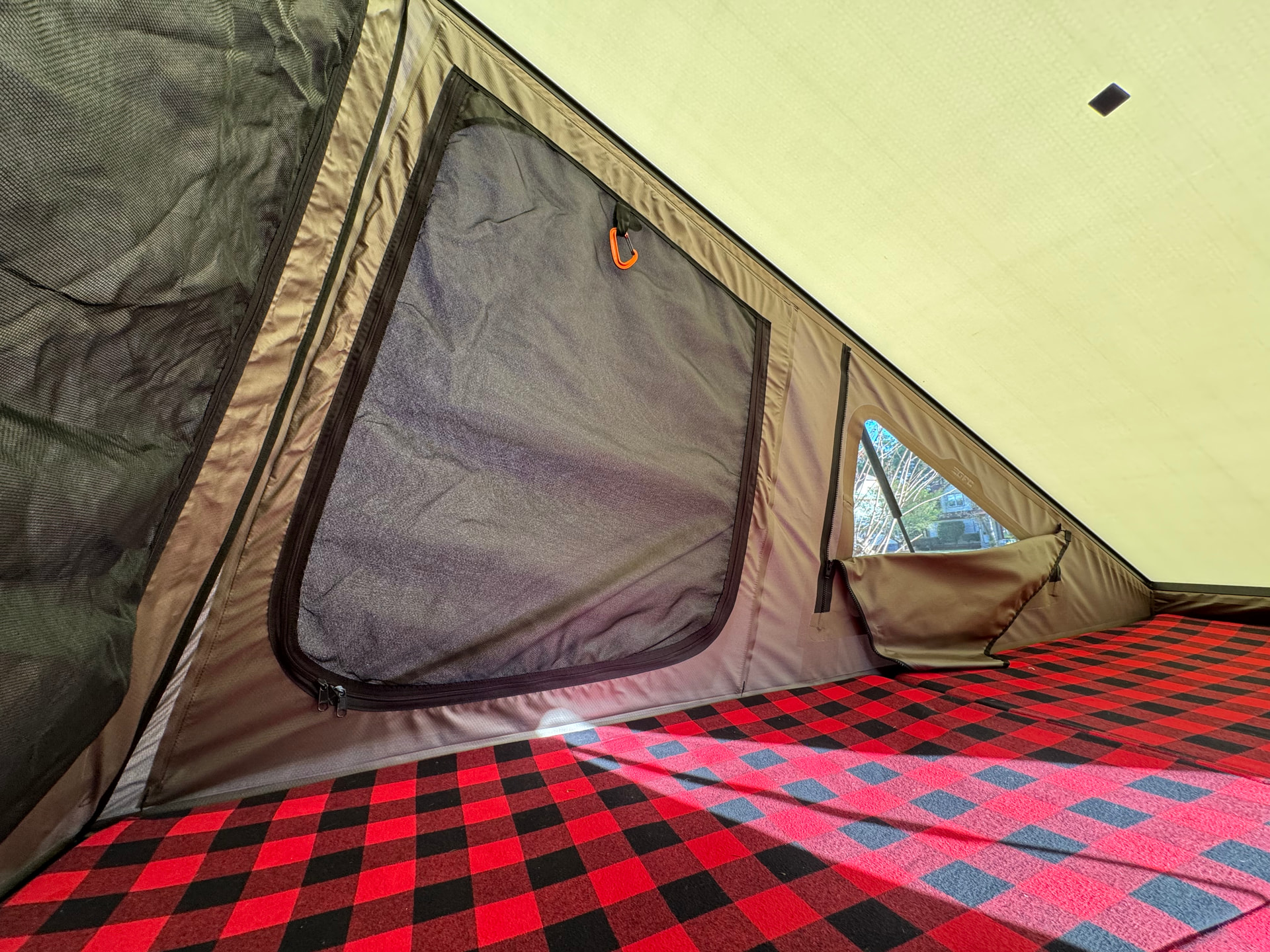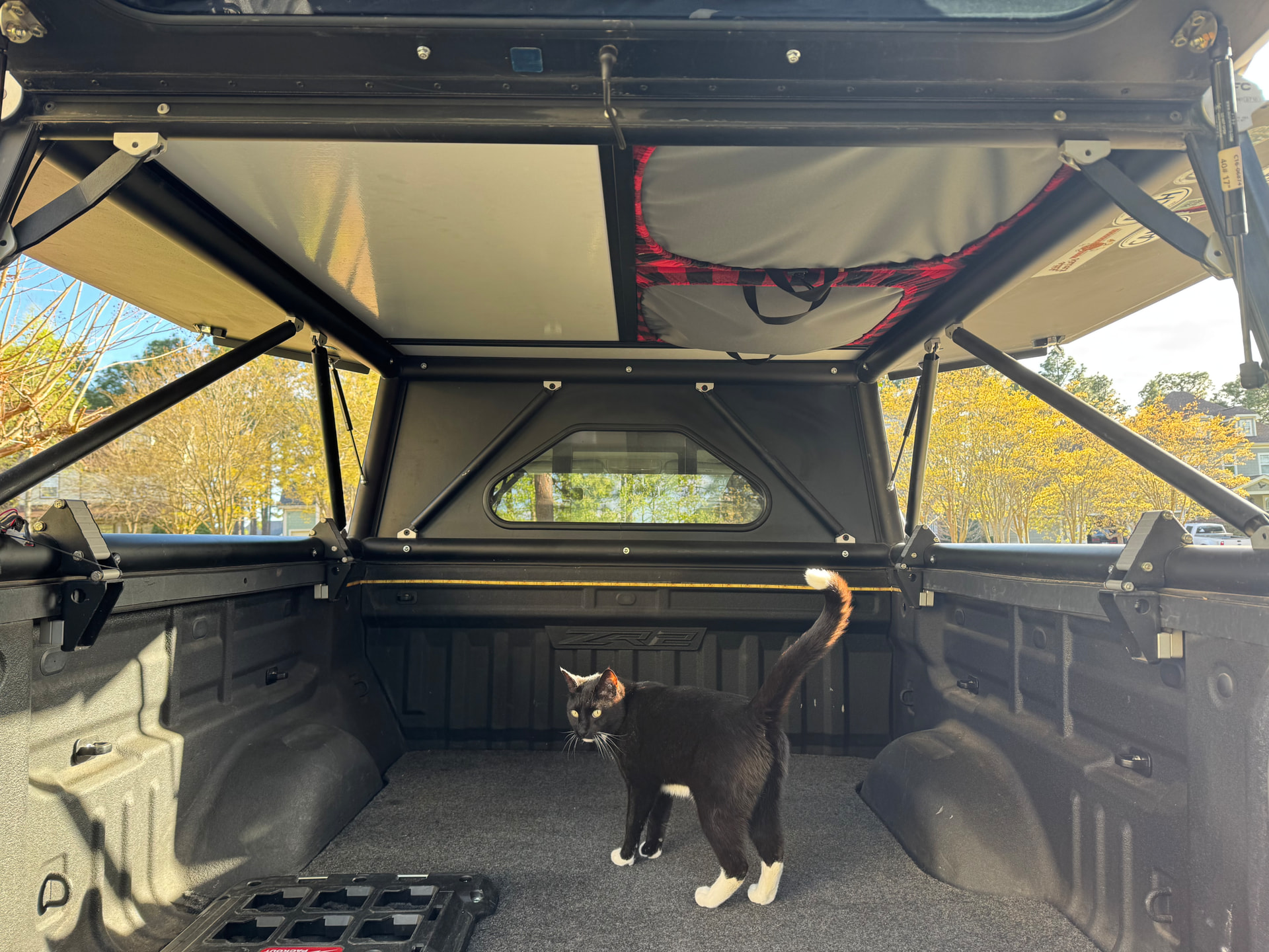 Camper includes rear window option, dual tent window option, mantis ladder and attachments, and Overlands Softgoods mattress cover (cat not included!).