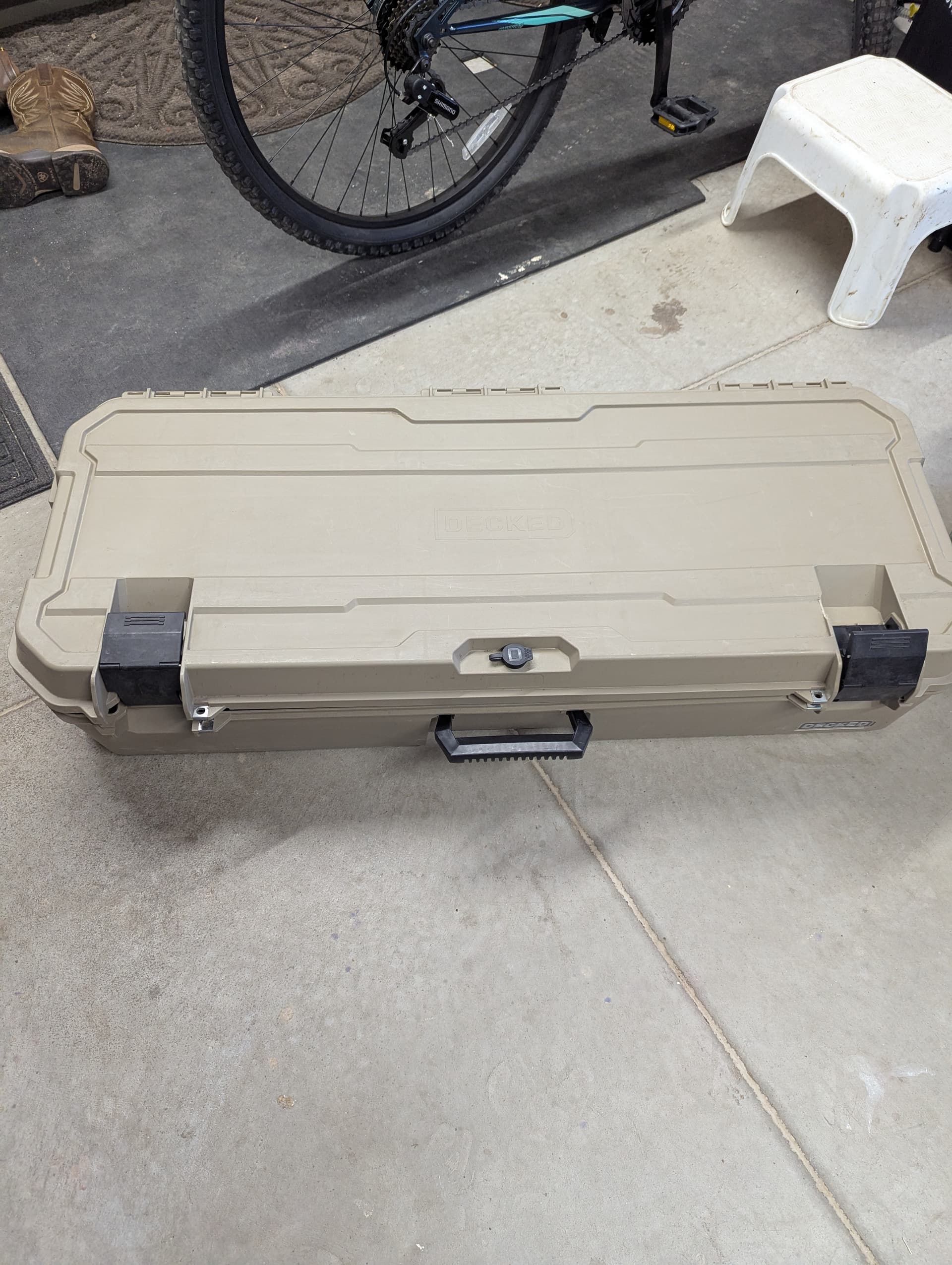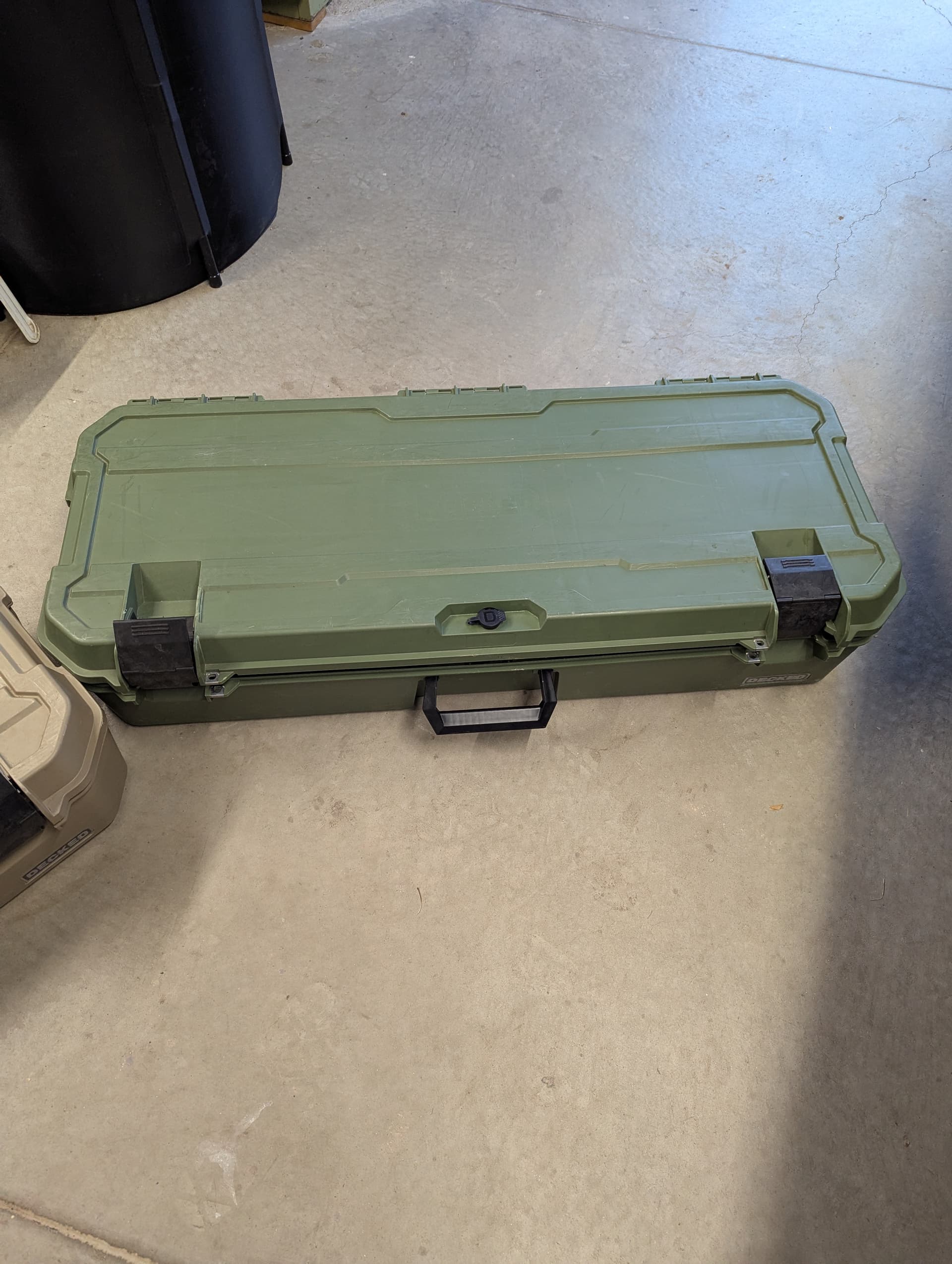 Two Honcho 80 Decked drawer storage D-CO boxes, one tan, one green. Both boxes have two dividers and two keys with a lock. These boxes are in great condition and only about 6 months old. We bought them but just don’t use them like we thought we would. Our loss, your gain. Get them now @ ~35% less than new. Both for $400 or one for $200.
