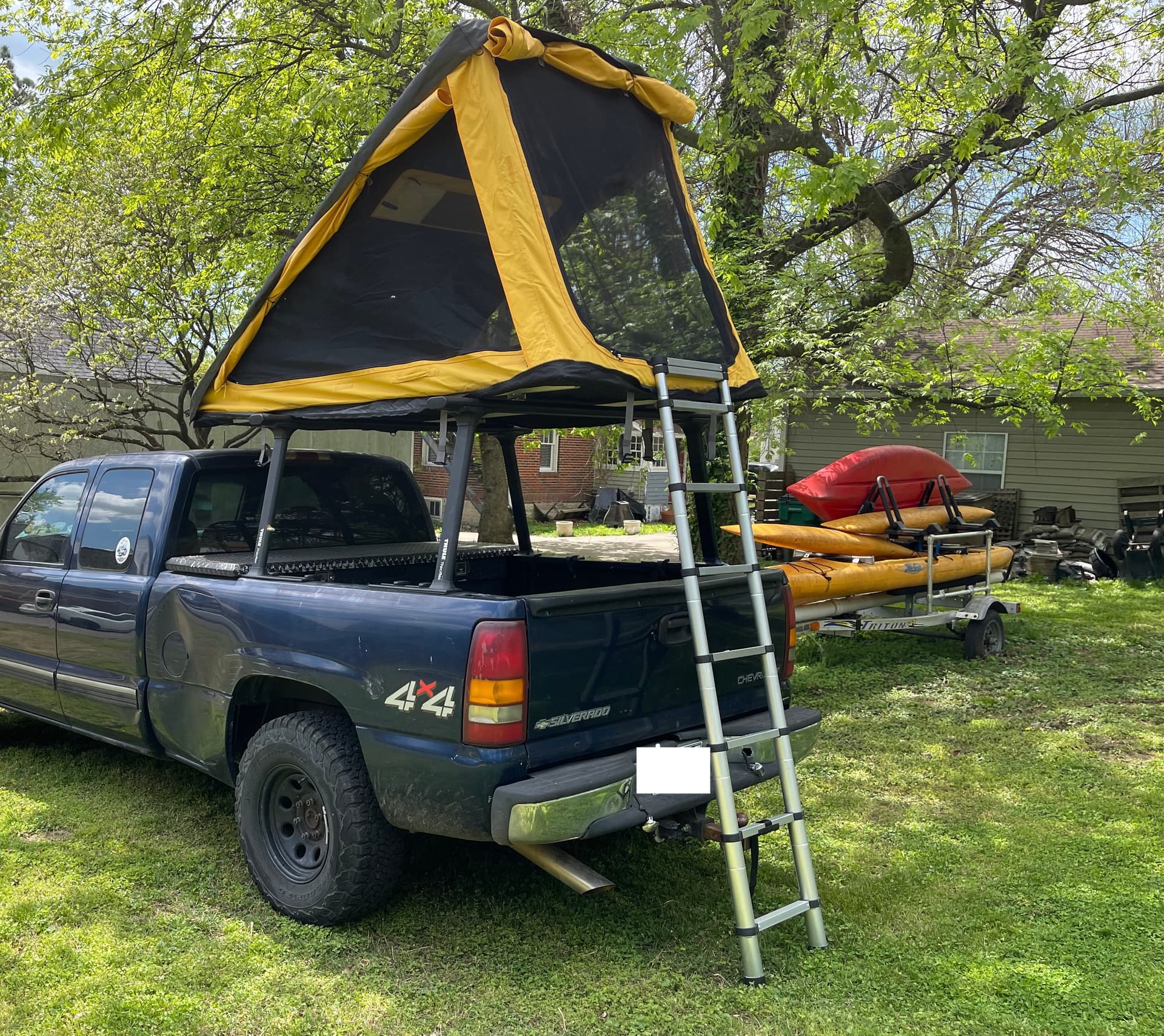 Doesn’t include a ladder or mattress, Tent did not come with them, they were add-ons. I purchased an Exped Megamat Duo LW+ and it fits in the tent perfectly, but I’m using this mattress in my van so it’s not for sale. I also purchased a telescoping ladder off amazon for $69 and it works great for the tent, but I need the ladder to access my roof rack on the van.