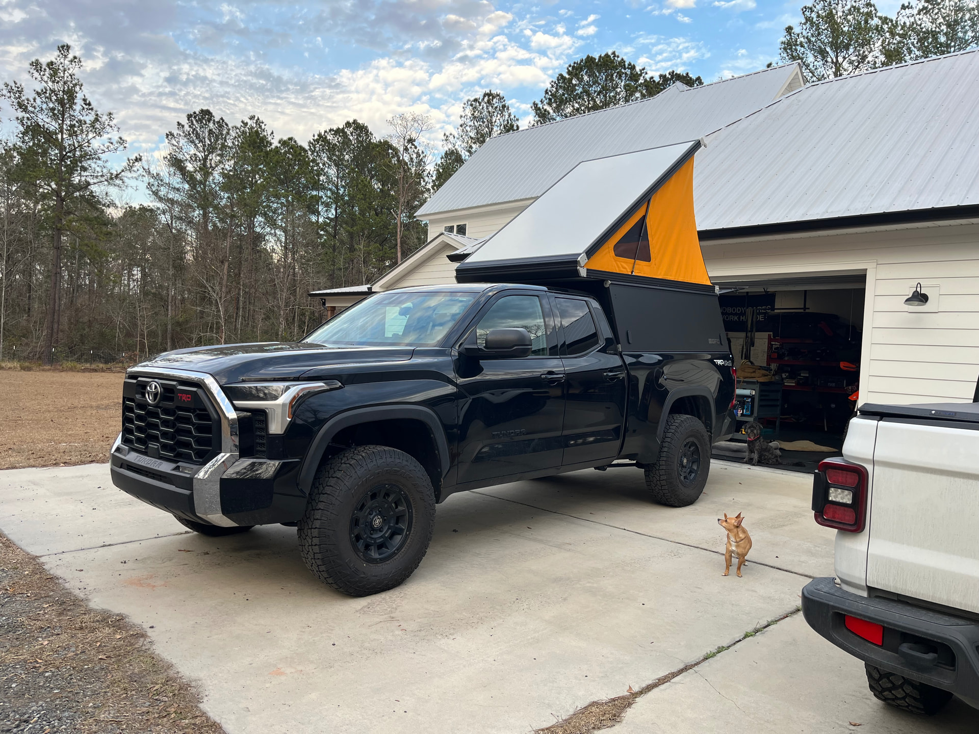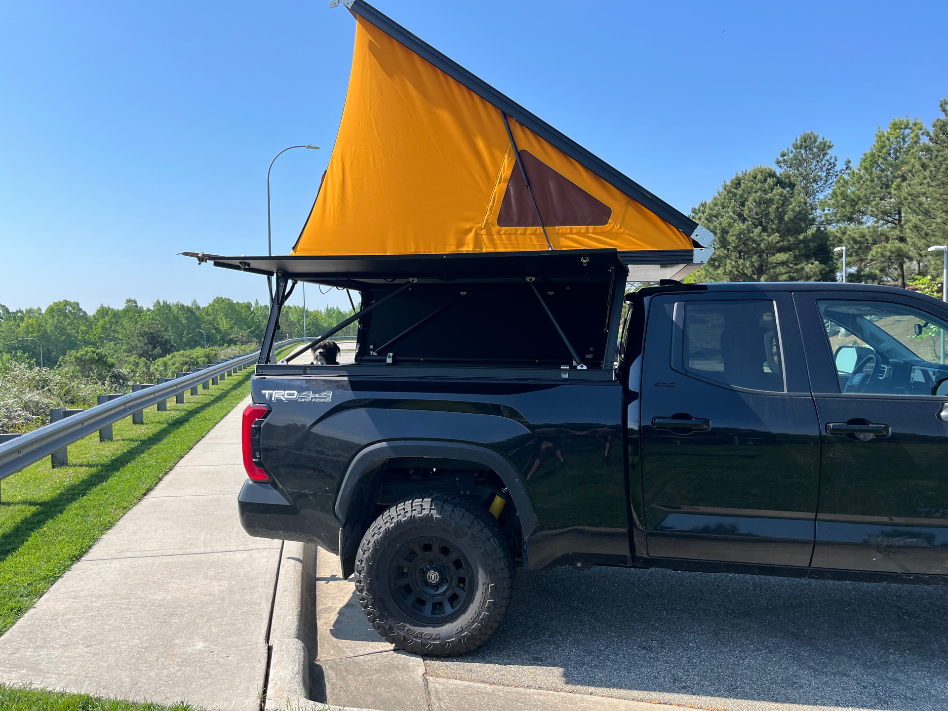 For Sale is my GFC V2 (orange tent) with a few accessories included build#5916. It has front and rear glass, no side doors just the small windows. The included accessories are drip rails, Cross bars, and fitted sheets. This topper was purchased & installed in April of 2024 in NC. I’ve camped in it roughly 25-30 times since purchasing. It is in excellent shape and with one minor imperfection being a pinky nail size tear in the mesh window from me moving around the floor literally day one. I patched it with the same material via tent mesh patch see photos.