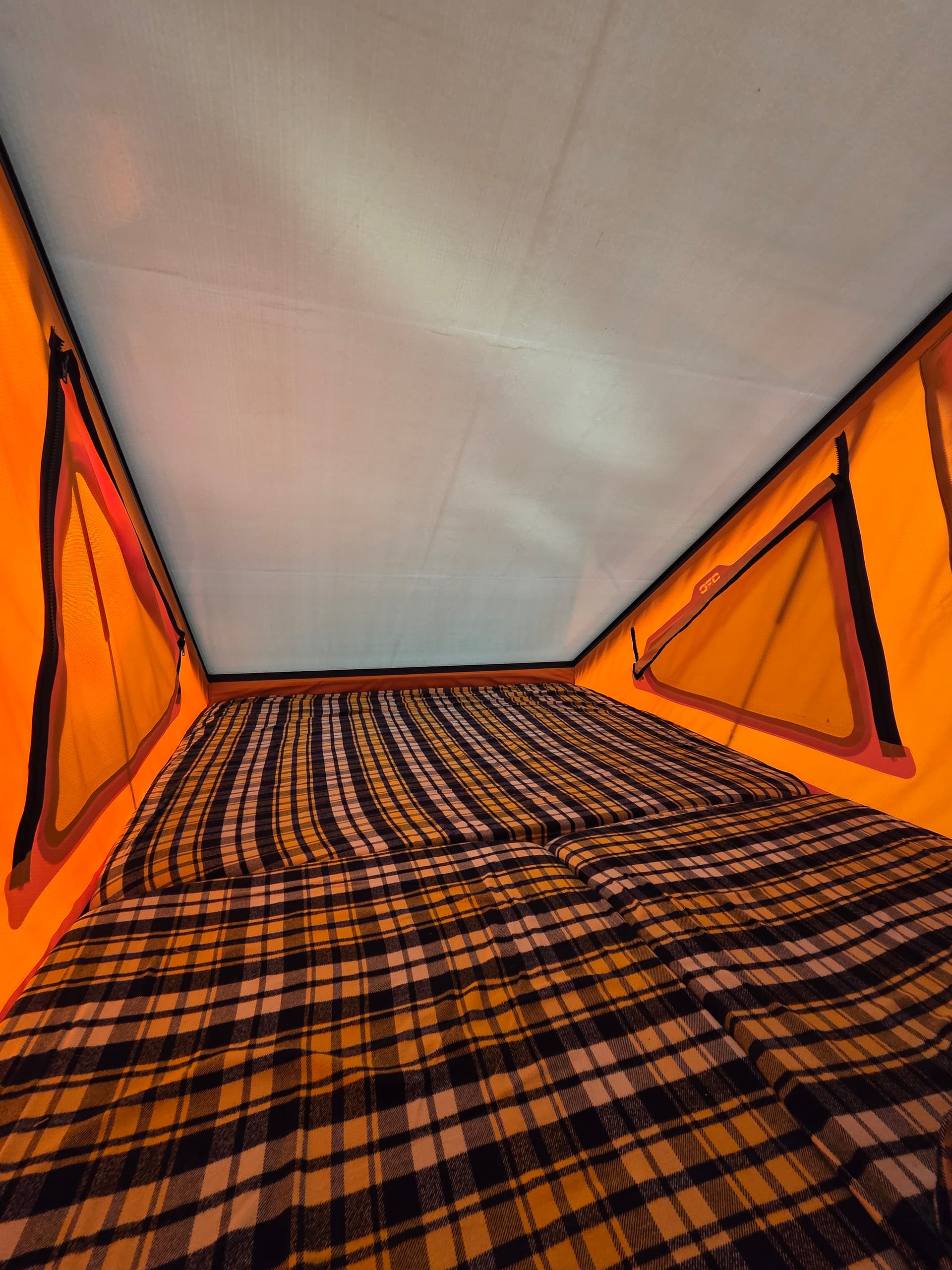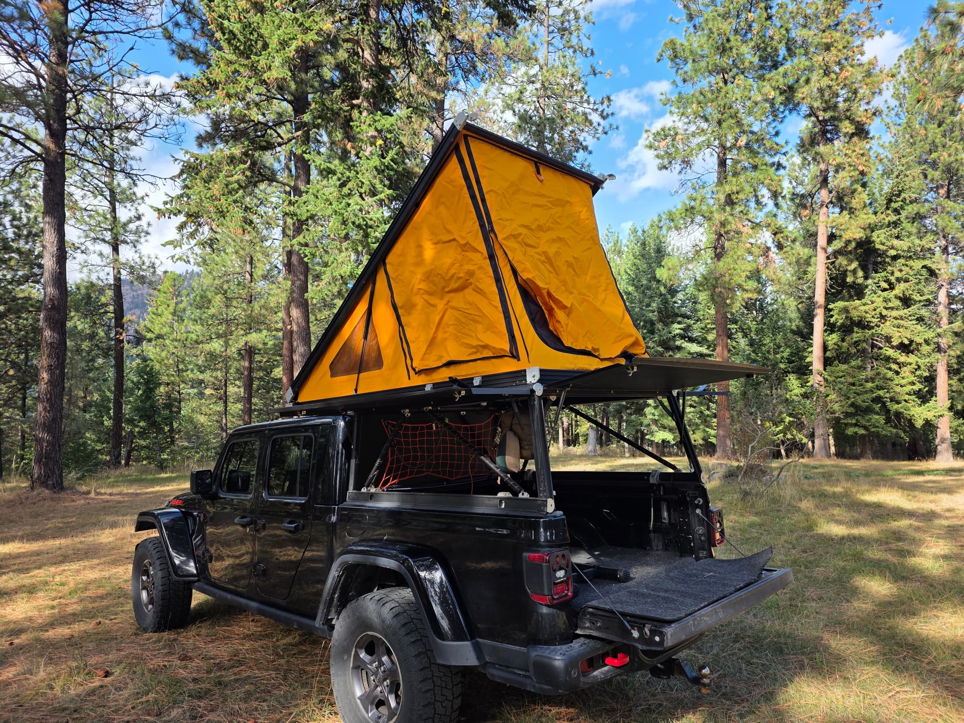 The GFC is in great condition and has no issues or problems. It has yellow custom-fitted plaid sheets. It comes with an extra cushion for sleep comfort. The GFC has updated locks, which work great. It’s a wonderful addition to any adventure rig. It’s ready to go to a new home. The only reason I am selling is because I want a newer GFC! I love these products, and it’s the only reason I would ever sell mine.