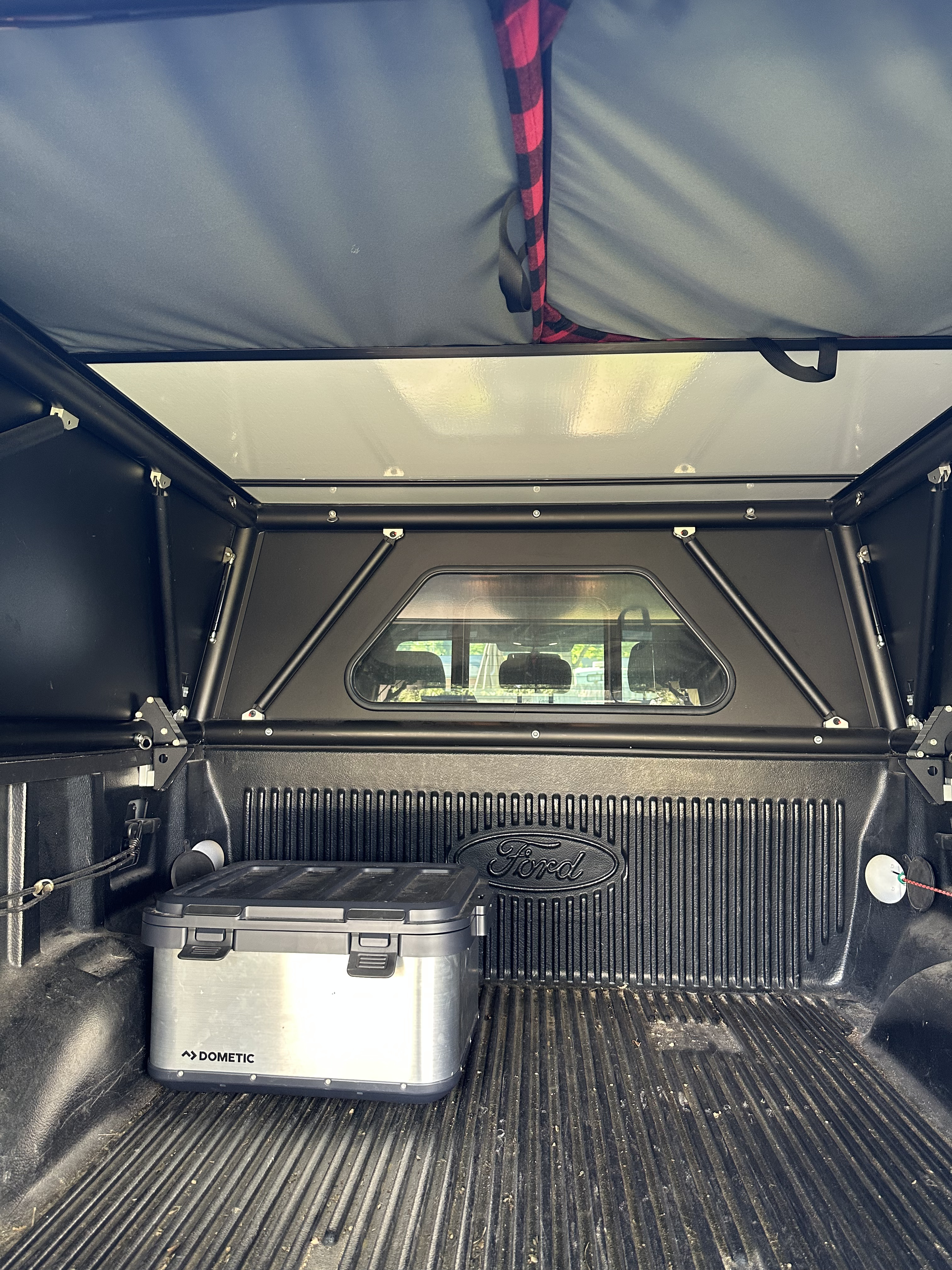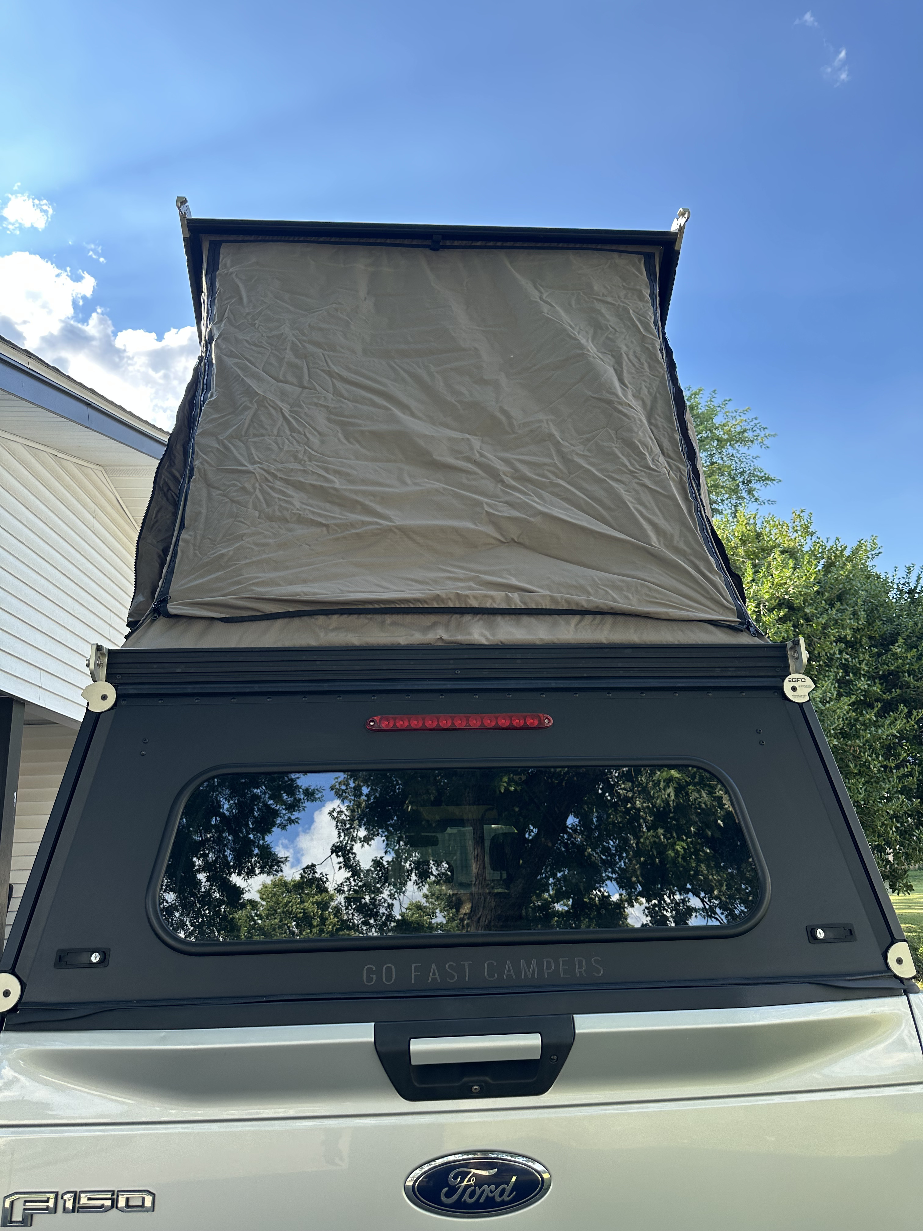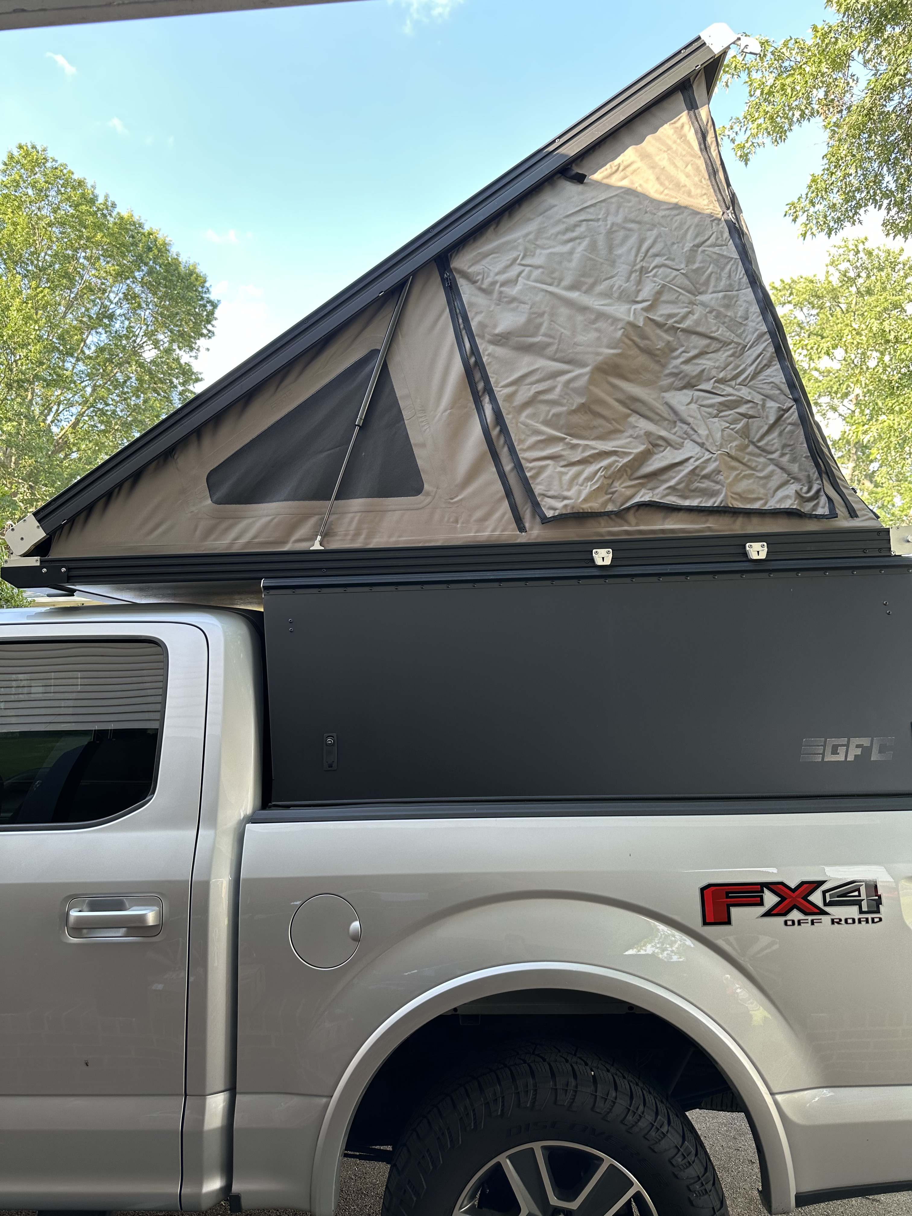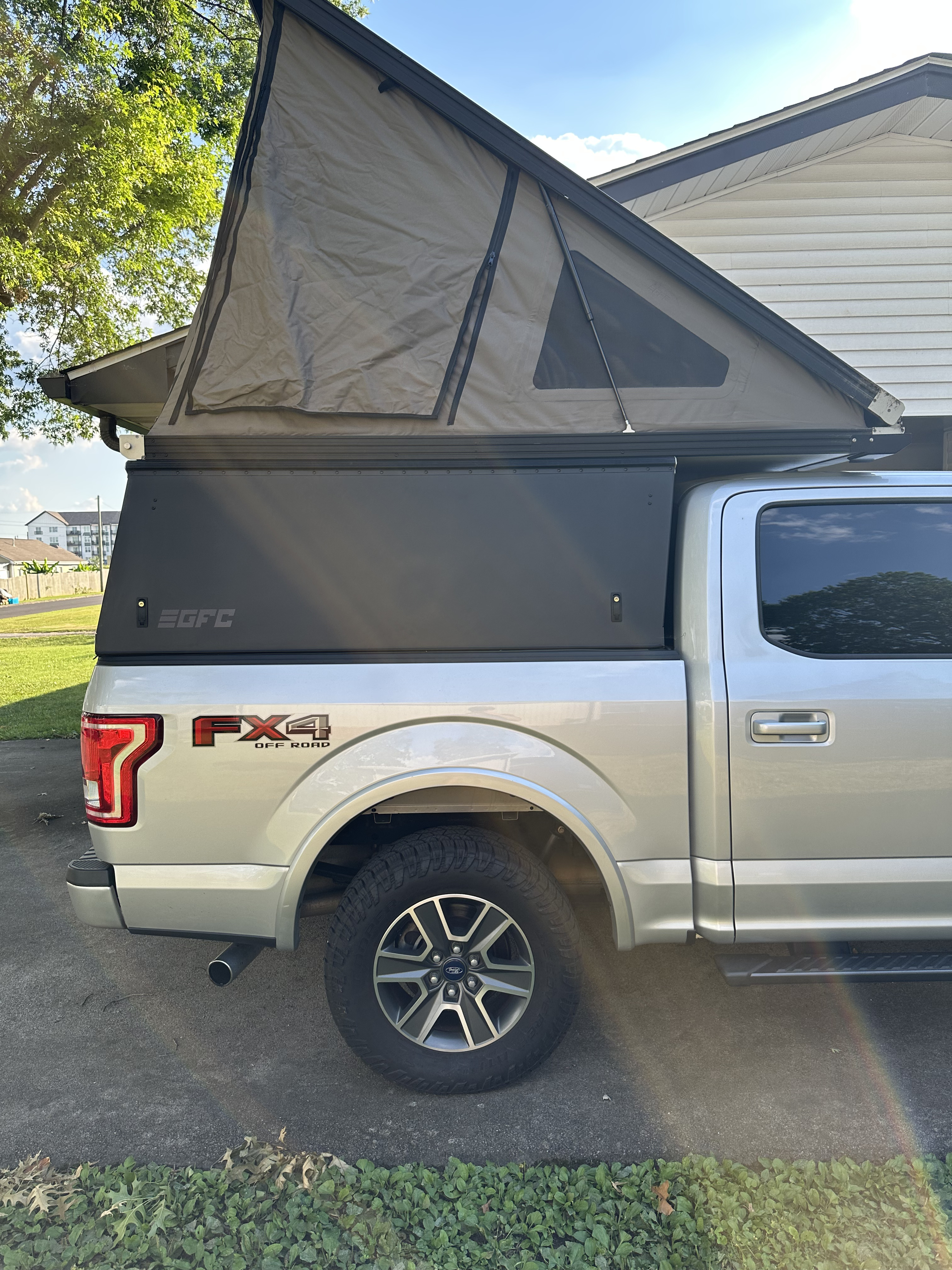 Item Description/ Condition: Unit 3655 V2 Camper with rear window. Grey panels. Includes GFC ladder, overland softgoods mattress topper/sheets, overland softgoods window cover, and J Edgar drip guards.
