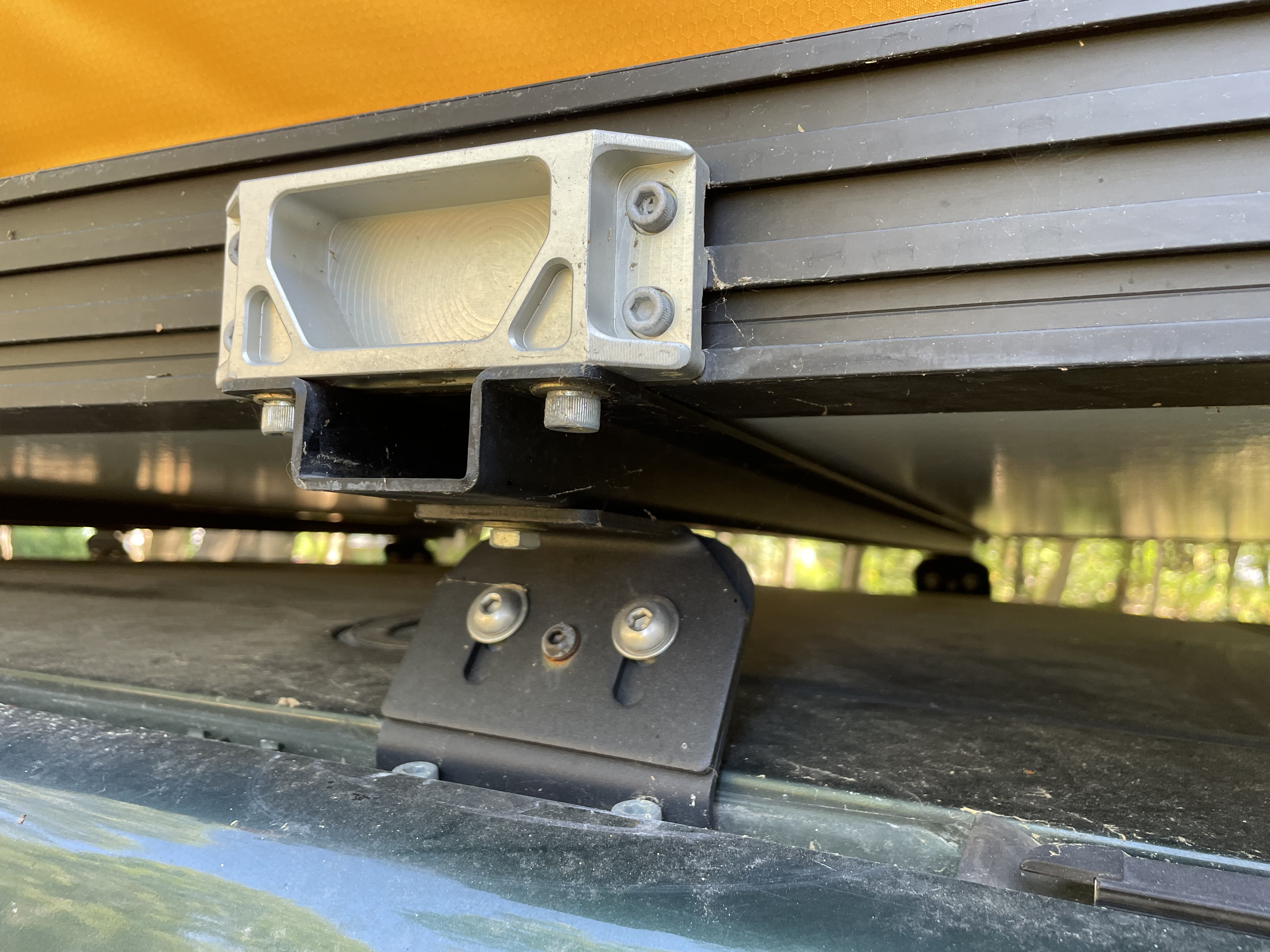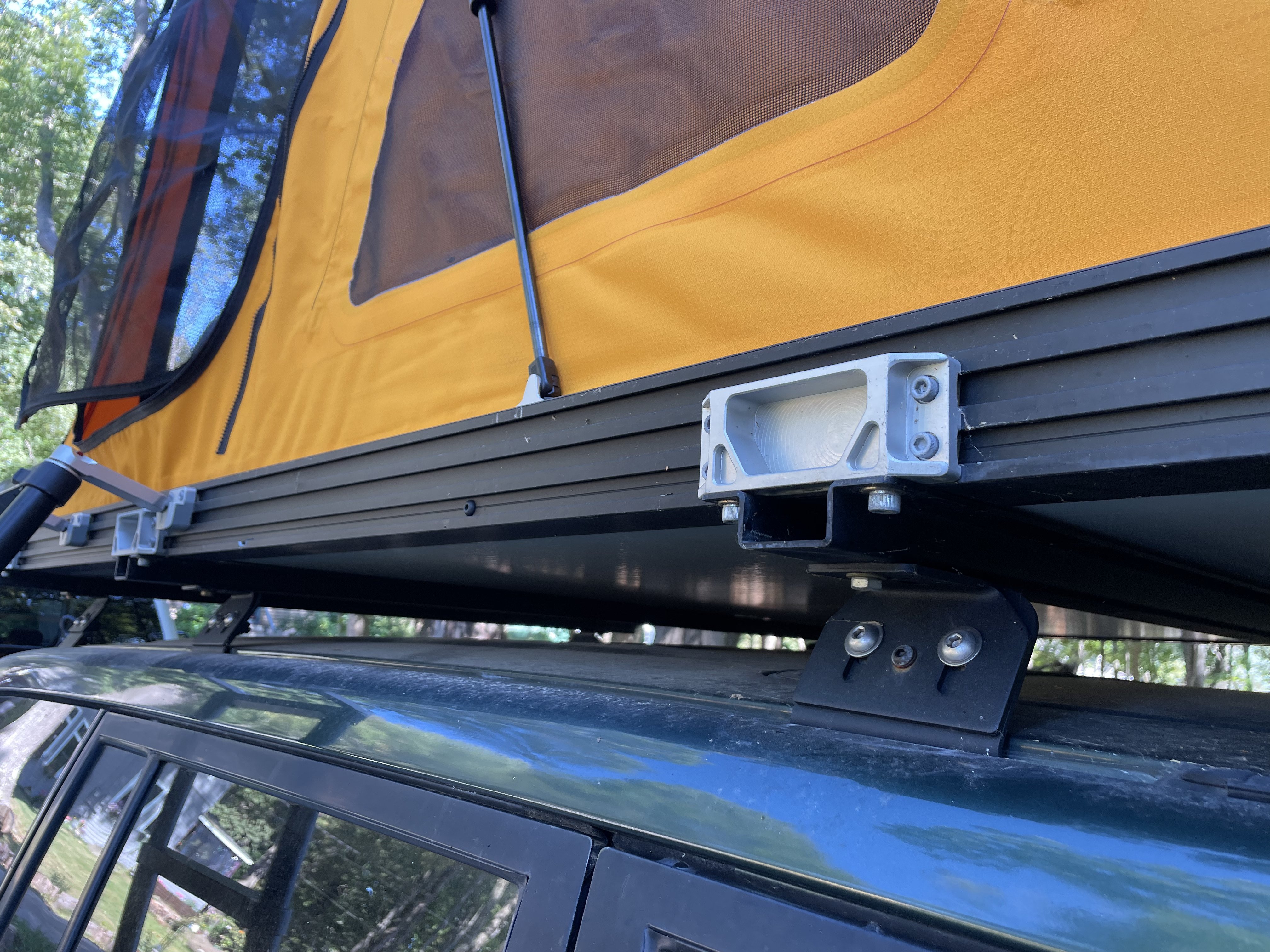 The tent has 3 beef rack cross bars, the ladder setup and 3 aftermarket rack mounts. It is mounted directly to the roof with Gamiviti Roof Channel Towers. It has been an awesome setup and has been bomb proof. We were on the road for over a month and I never had issues with this setup. For half the drive, we had my ski top box and my paddle board on top of the tent.