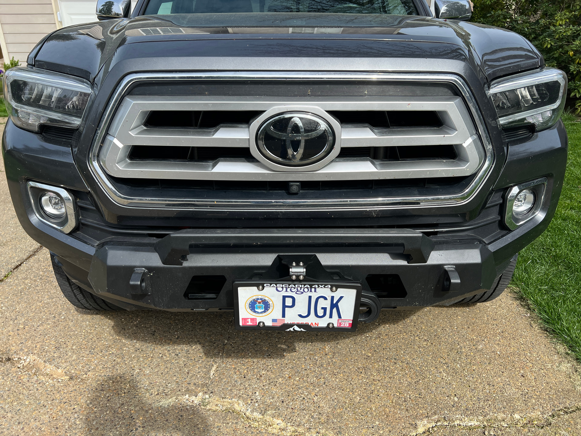 Recovery: I have your basic 48” 5000 lb trail jack and the Scar winch hidden behind the Hiline front winch bumber and also the Flipster V3 | Winch License Plate Mounting System