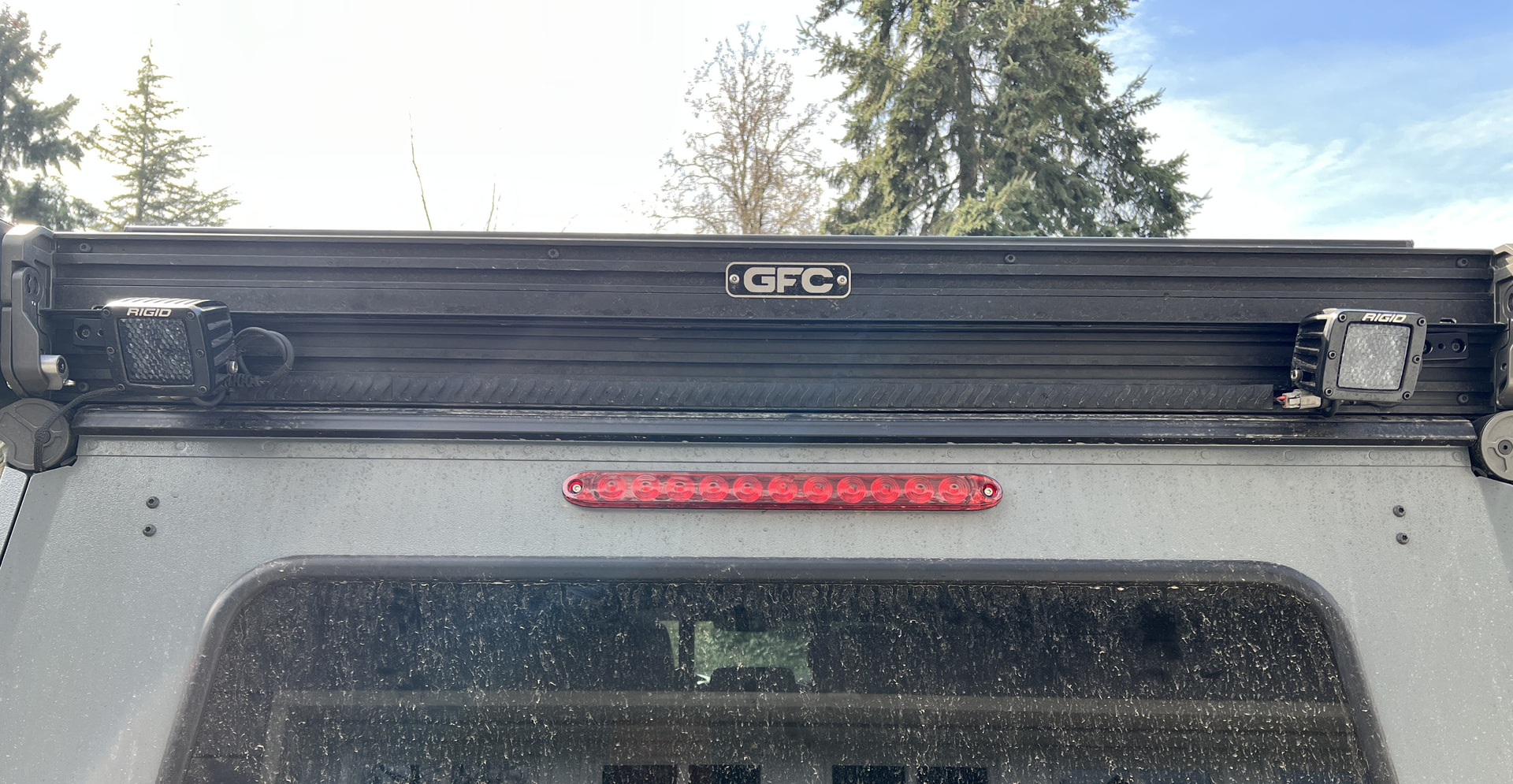 Lighting: I have the built in lighting for the tent and the truck bed that was part of the build. They plug into the Jackery (more on that later) and provide ample lighting. For outdoor lighting, I have the lighting kit for the awning from OVS and Rigid lights attached to the back of the tent mount. These are wired to my backup system so they automatically come on when backing up, in this situation they run off of truck battery. There is also a switch mounted on the back driver side of the truck so I can turn them on running on the Jackery. They do fit below the awning so they light up underneath it. For Trail lighting I installed the Rigid Industries 930314 SR-Series Pro Combo Light Bar on a Trailrax Modular roof rack, I chose this lighting setup as I didn’t want a bunch of individual lights but still achieved the same distance, side and up front lighting. It works brilliantly (no pun intended by then again why not).