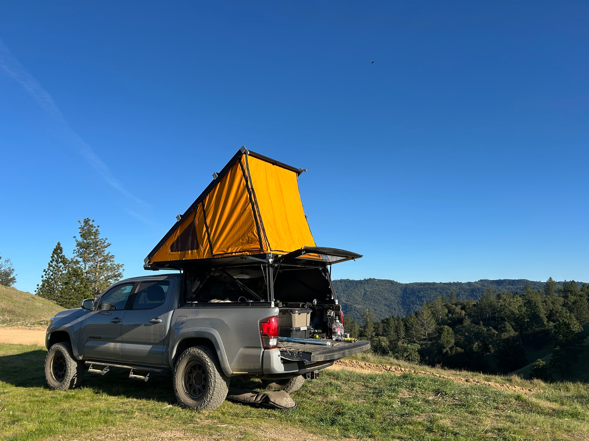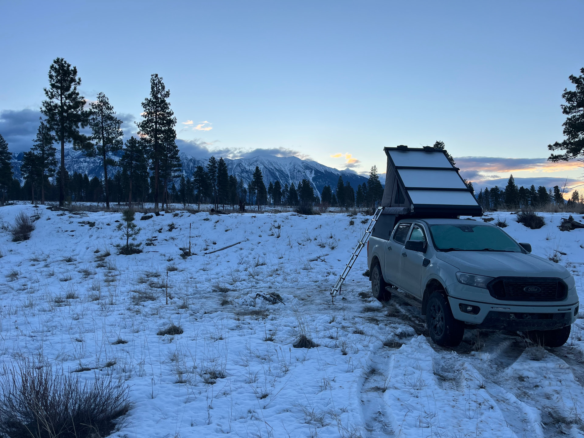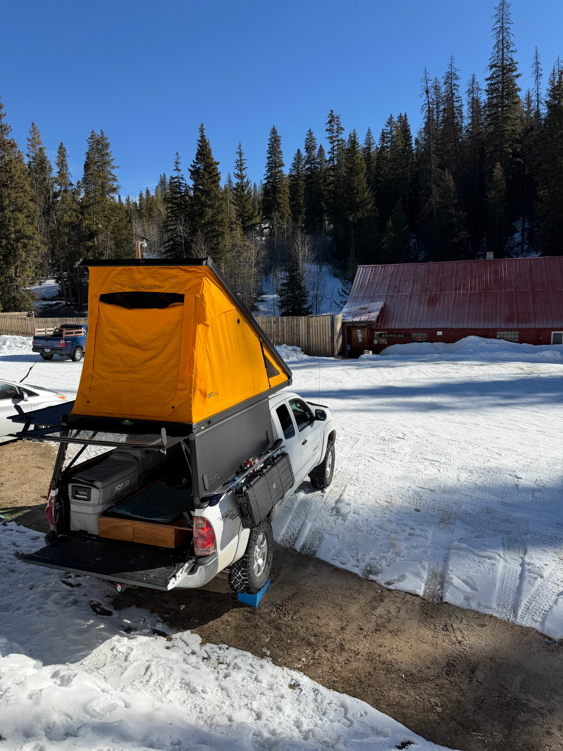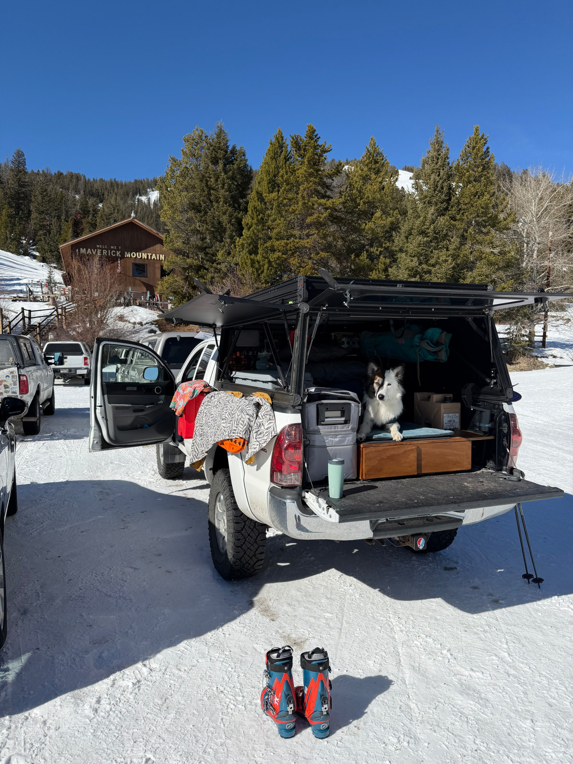 Bonus: Timber guarding the rig while I ski Maverick Mountain