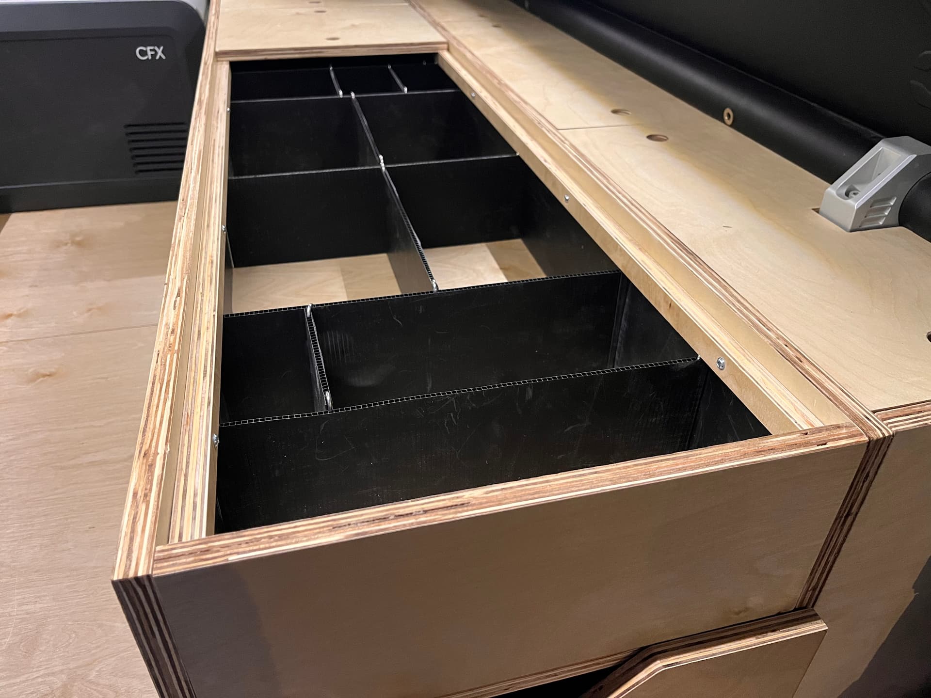 I planned out all the cabinet dimensions by measuring the truck bed about a thousand times and creating templates in Illustrator. Once I was happy with my plans I cut out the pieces I’d need to size. Even without the GFC, I was able to roughly frame out the different components.