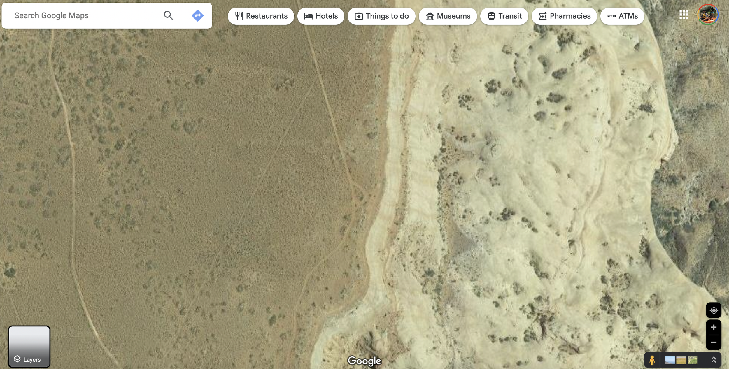 Once we find a road that seems promising we will then switch over to satellite view. While looking at the sat view we are generally looking for traces of vehicles turning around. These often look like teardrop tracks and generally provide a good hint saying that a particular spot is large enough to camp in, or that it’s level ‘enough’. These tracks also illustrate the importance of staying on the trail and not creating new camp spots because of how large an impact camping in a spot can have that it’s clearly visible in sat images. Usually once when we have focused our attention on an area like the one below, we will start scrolling around and visually following the road looking for these hints.