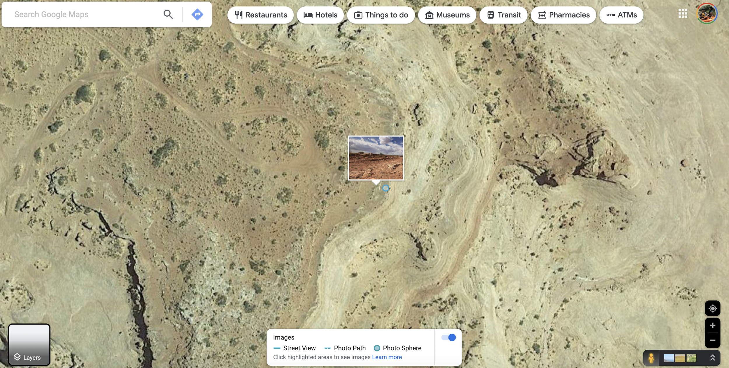 One of the other helpful features that is built into Google is user-uploaded geo-tagged photos. This is a really great way to clearly see the terrain of an area that someone has uploaded a photo from but it can also show some insight into how popular an area may be. If there are a bunch of tiny blue circles each representing an individual photo, maybe this is an area to avoid if you’re hoping not to see anyone. Secondly, these photos may provide great information about road or ground conditions either at the hopeful camp spot or along the road to it if someone has tagged those places.