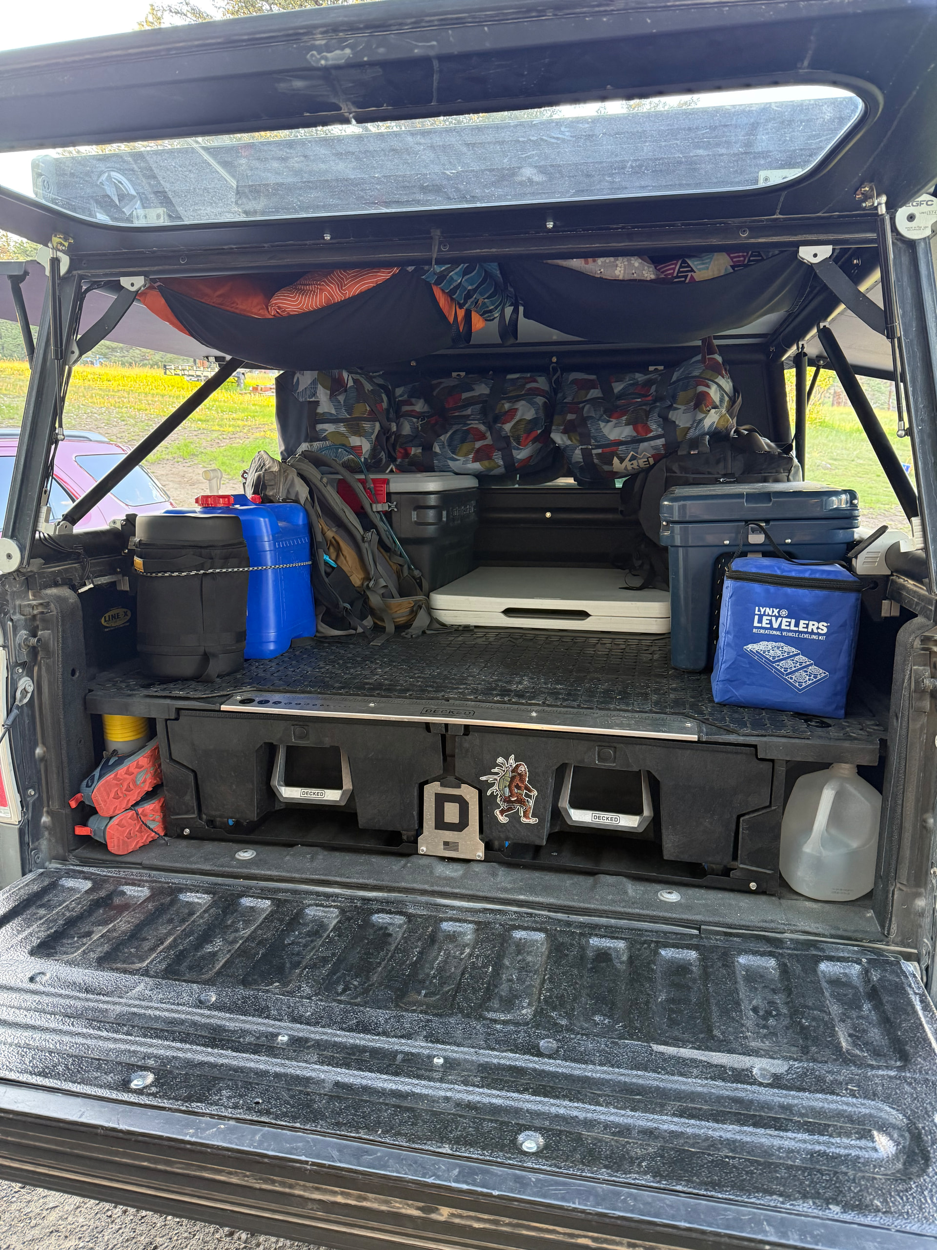 For what its worth I considered this as well. My buddy has a decked on his long bed tacoma with a V2 and its a perfect set up for him because his priority is for his construction business where he needs locked storage and full use of the bed day to day. What @YetiX said is spot on about the head room if the floor is not out and the main reason why I did not do it as my priority is space. Given my short 5.5 bed F150 . I also considered doing this Tacoma Interior Camper Buildout with 1/2 Decked System . Ultimately I ended up just building a single drawer out of 8020. Build thread is here 2025 F150 build . I am still working out the optimal configuration but I chose this so I would still have room for 2 peoples worth of hunting gear for 10 days of base truck camping and back country camping, packs, and full backpacking gear as well as empty coolers etc. plenty of room in this set up when you pull out the coolers and also because it is pretty easy to remove when I do want the full bed to for truck stuff. ONe other thing is that being able to have the floor in an L configuration and stand in the bed with only one of the square panels out is really great.