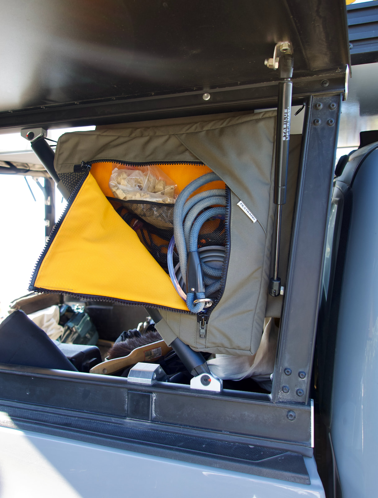 Wanted to bump this thread and say I have been super happy with my bags! I haven’t been able to get any good pictures but have been using them for a few months now. I got two front bags that open on the inside. It’s perfect for storing things I only use while camping/rarely. On the driver side I have two overland soft good window covers, a hand brush for cleaning out the truck bed, and some bungee cords. On the passenger side I have two luno shoe storage bags and a suction iPad mount I use up in the camper.