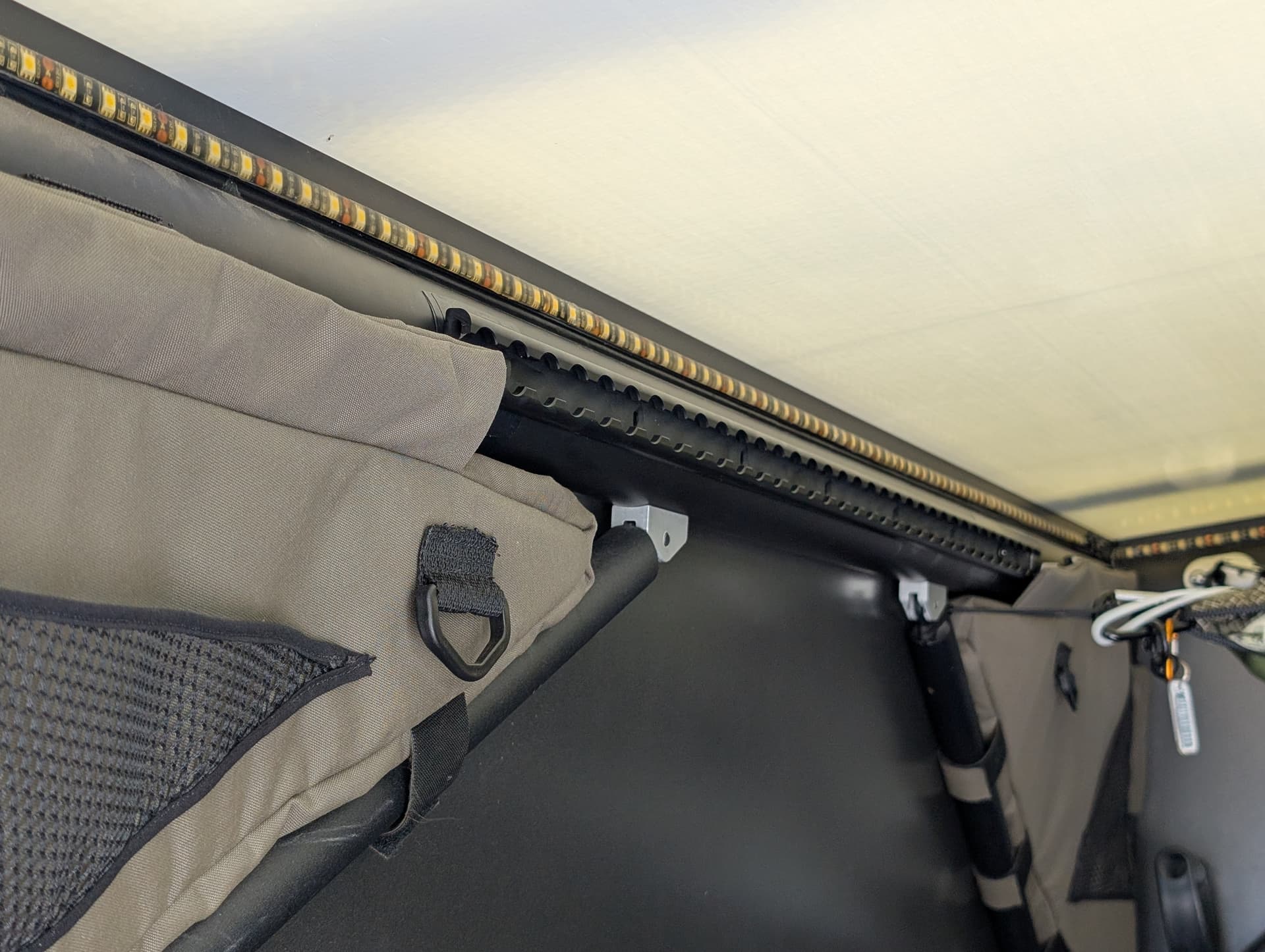 and drilled a hole for the controller wire to come into the tent. Also insalling the headliner made it easy to put the controller up on the roof with a little velcro.