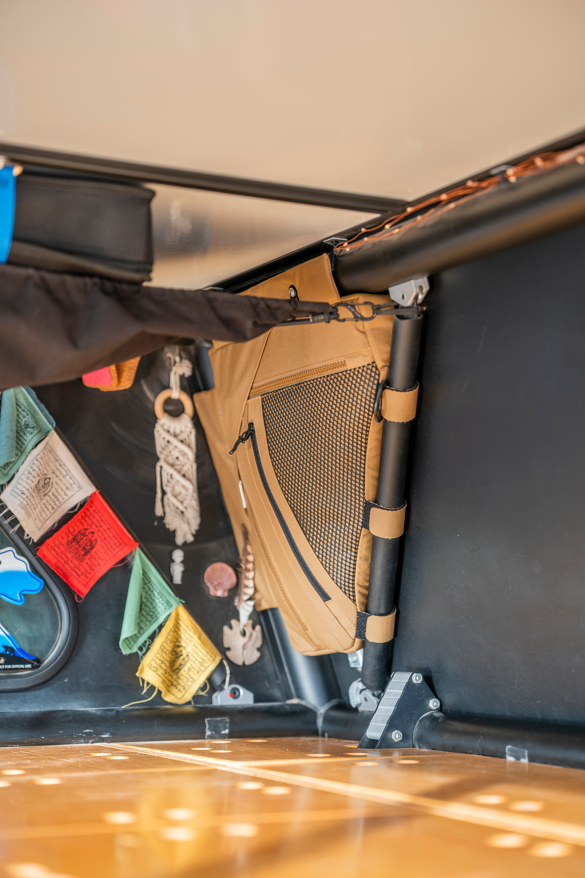 I’ve started putting things like clips, clothespins, carabiners, and other fasteners in my driver’s side bag. All the things that get lost in the storage bins now go in the bags. I still need to figure out what to store in the passenger side bag other than my keys which go there so they’re convenient for unlocking the truck in the middle of the night/morning.