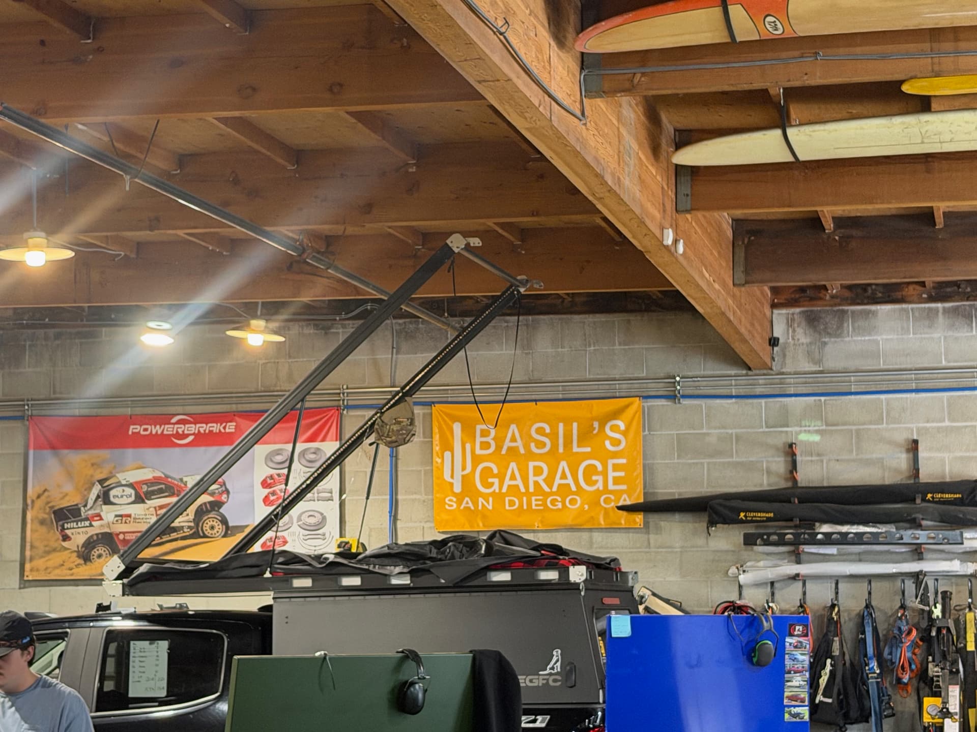 It’s been a big couple of days. First, I was finally able to upgrade to the Pro tent. I took my truck to Basil’s Garage and had them do the job. Basil has a very, very nice garage and there were plenty of cool trucks to drool over. He also has a really friendly shop doggo.
